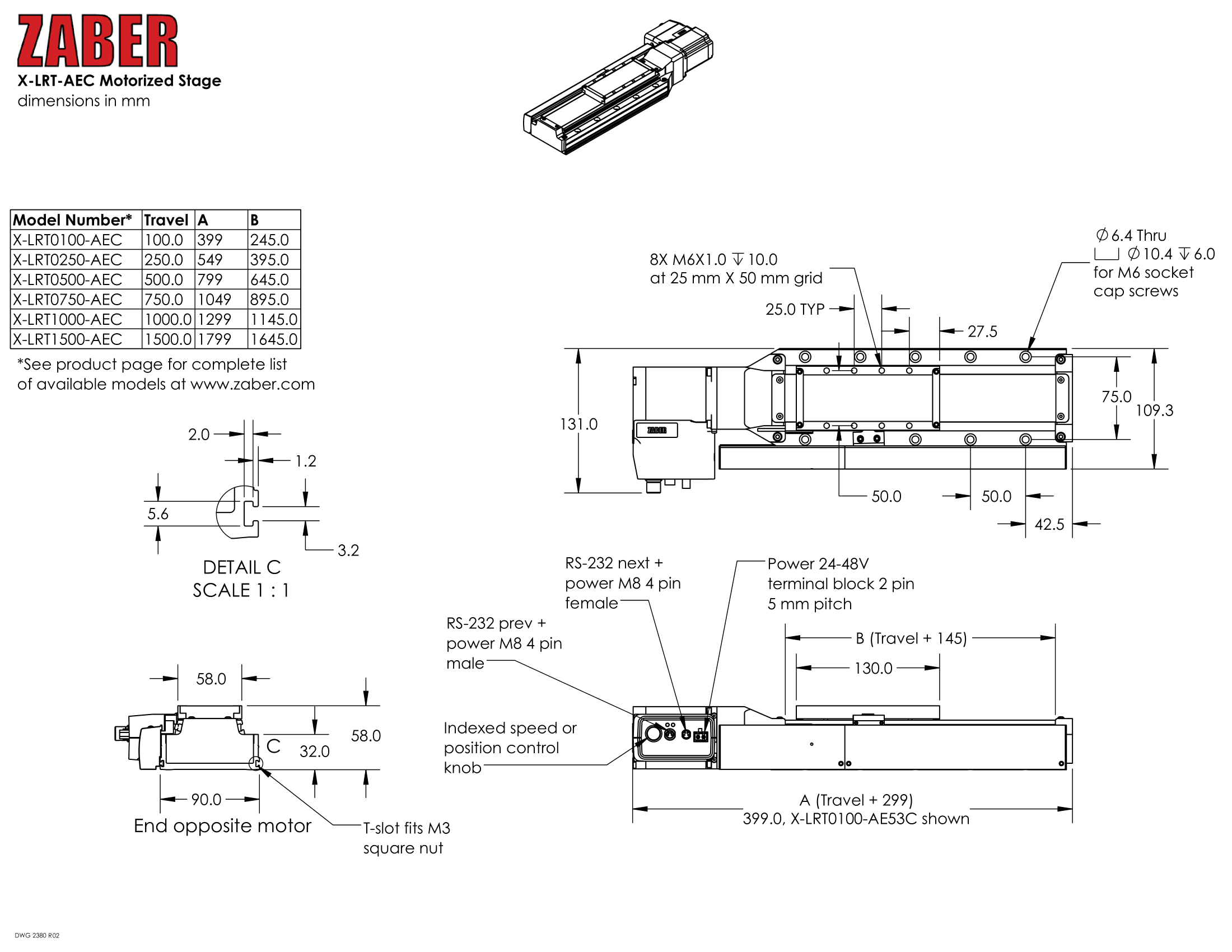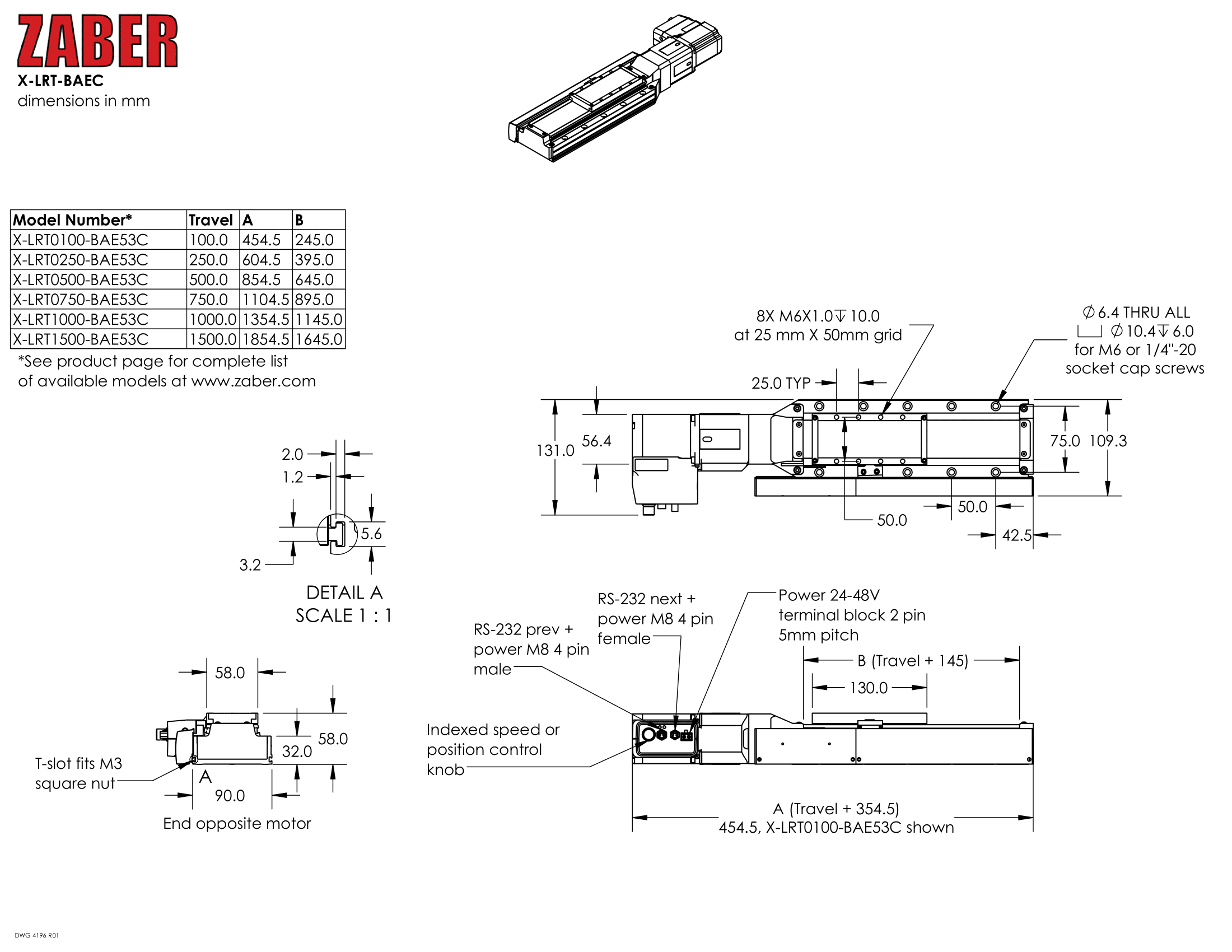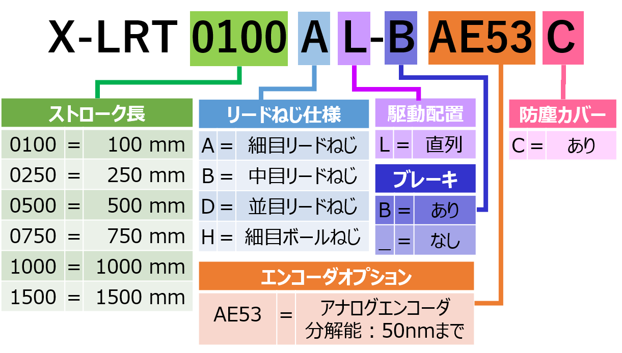 | 型番/スペックシートDL | X-LRT1000HL-BAE53C-Datasheet.pdf | 概要 | ボールスクリュー駆動 | 1000 mm 移動量 | 中分解能 | 中速 |パワーオフブレーキ |