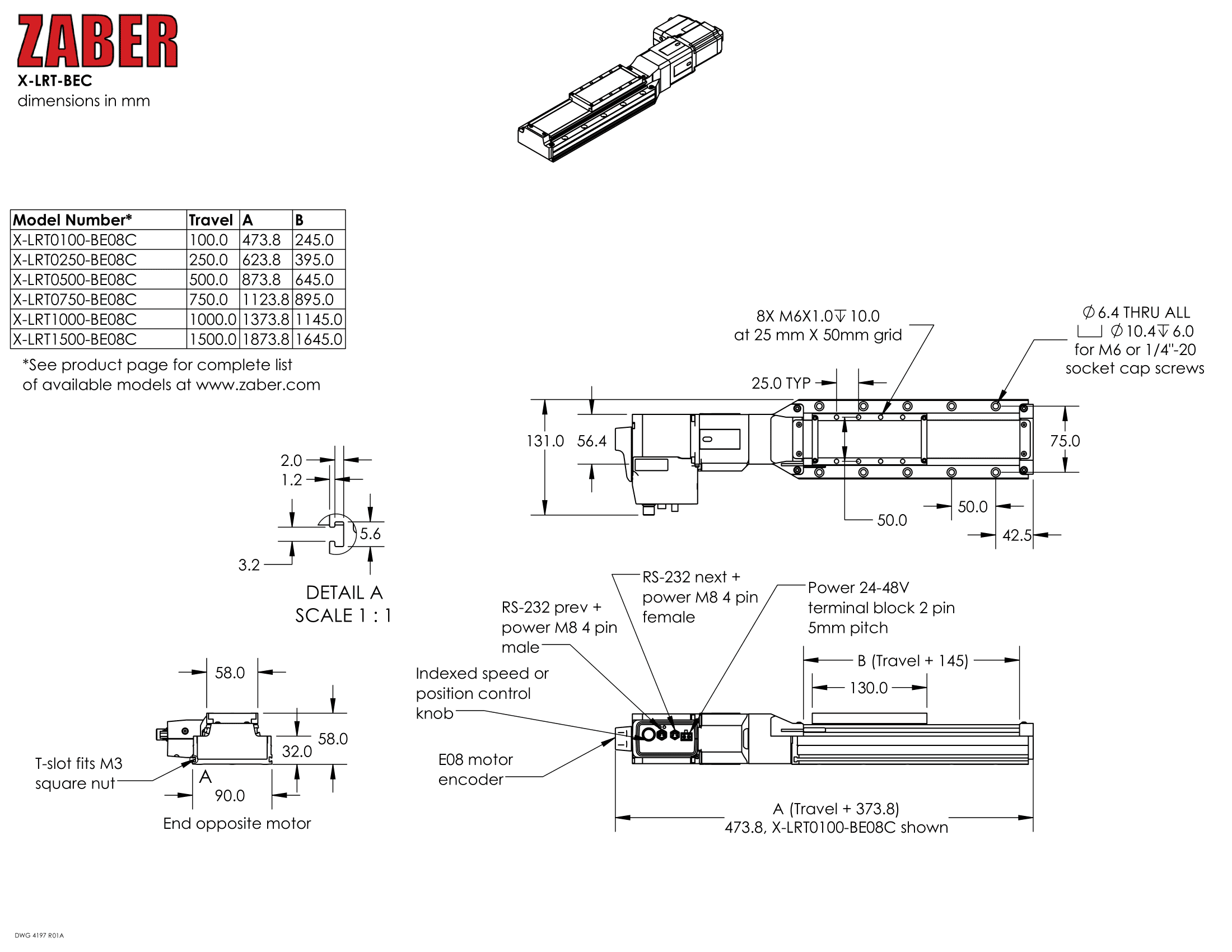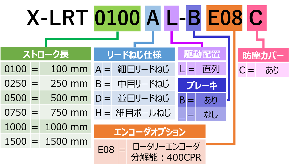 | 型番/スペックシートDL | X-LRT0100HL-BE08C-Datasheet.pdf | 概要 | ボールスクリュー駆動 | 100 mm 移動量 | 中分解能 | 中速 |パワーオフブレーキ |