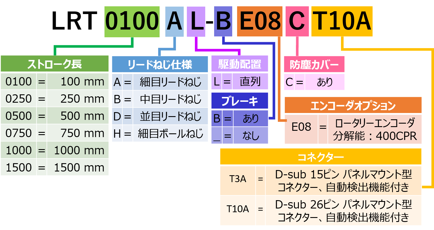 | 型番/スペックシートDL | LRT1000BL-BE08CT10A-Datasheet.pdf | 概要 | リードスクリュー駆動 | 1000 mm 移動量 | 中分解能 | 中速 |パワーオフブレーキ | リードタイム | 14-21 日 | 見積もり/お問い合わせ | お問い合わせはこちら |