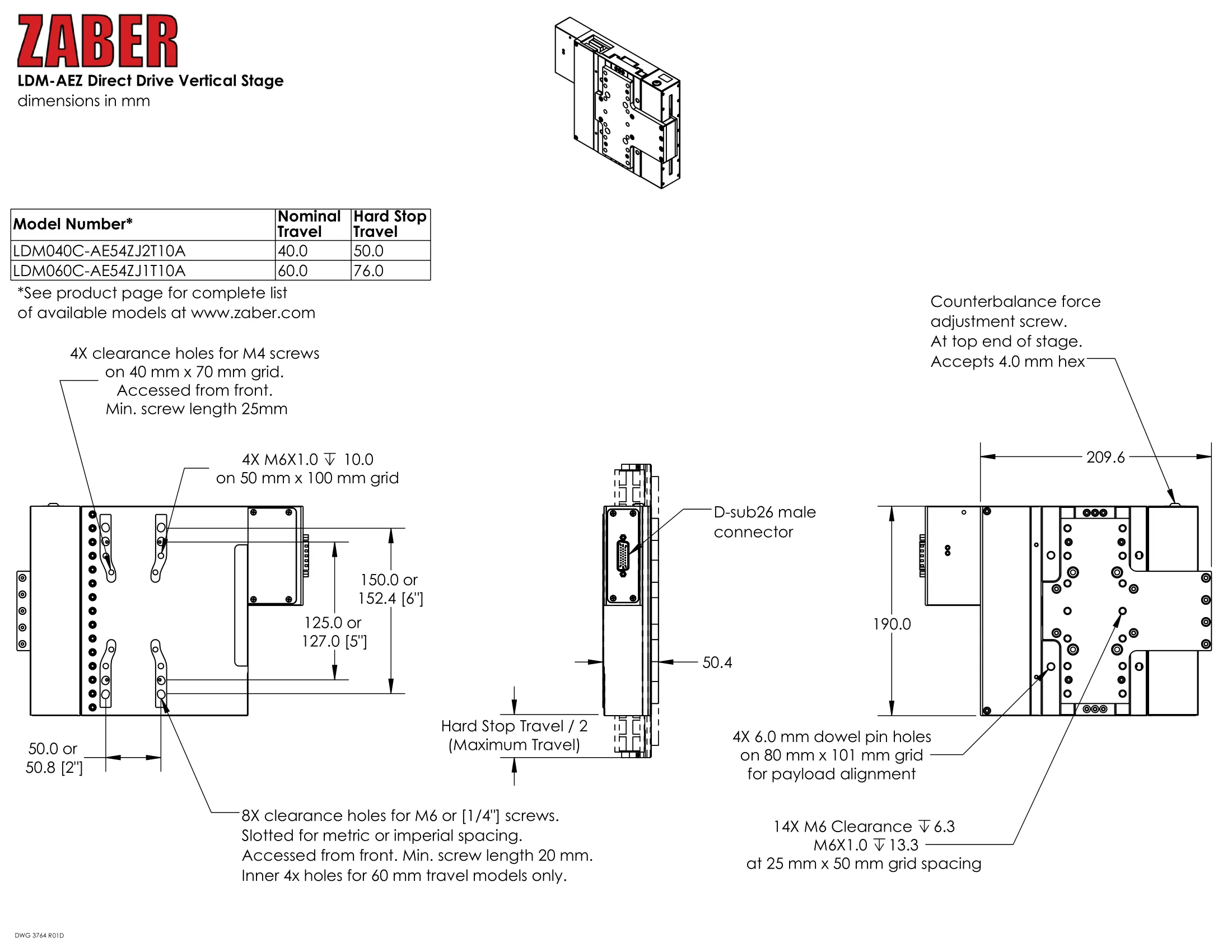 | 型番/スペックシートDL | LDM060C-AE54ZJ1T10A-Datasheet.pdf | 概要 | 60 mm トラベル | 低荷重調整式カウンターバランス | リードタイム | 14-21日 | 見積もり/お問い合わせ | お問い合わせはこちら |