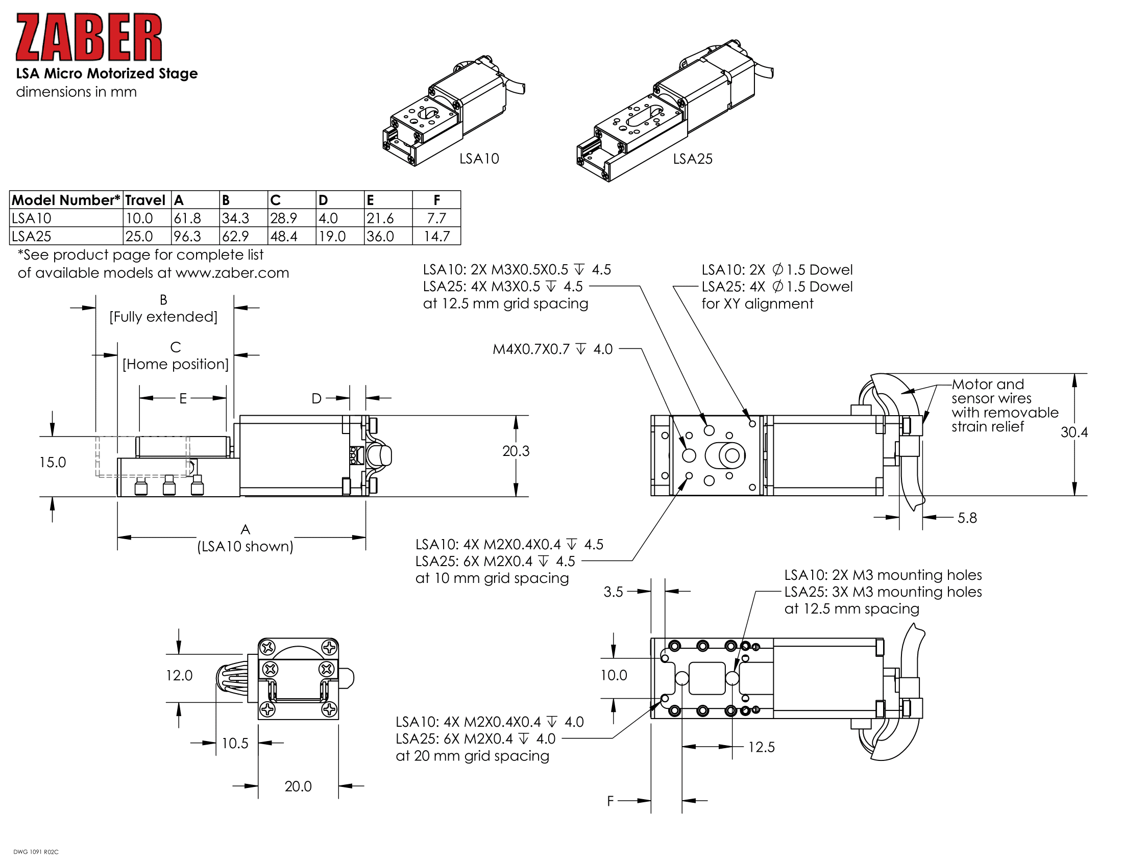 3. 0.023µmの分解能(0.012インチピッチのリードスクリュー)で、10mmまたは25mmの移動量を実現します。