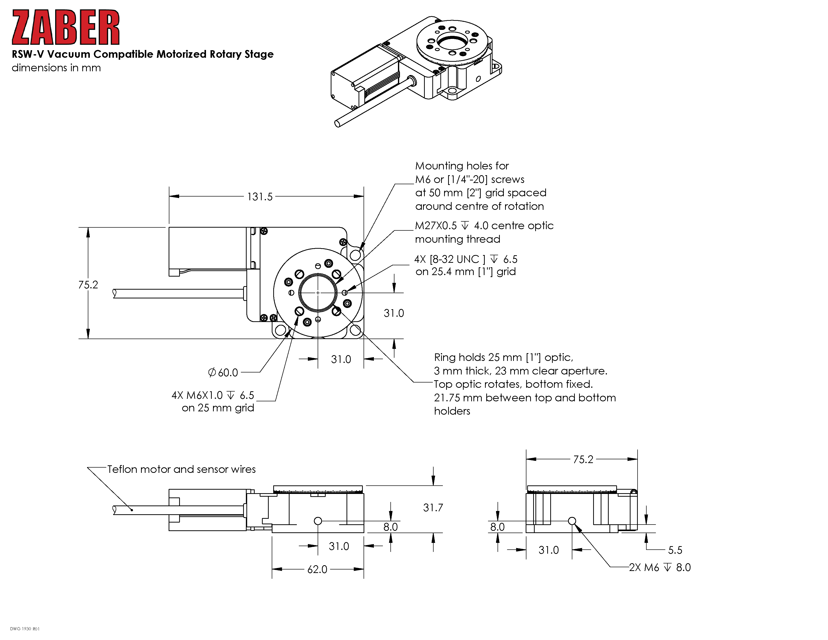 RSW-V2は、真空対応材料を使用することで、ガス放出を最小限に抑え、ポンプダウン時間を短縮します。Zaber社の他の製品と同様に、RSW-V2シリーズはセットアップと操作が非常に容易です。