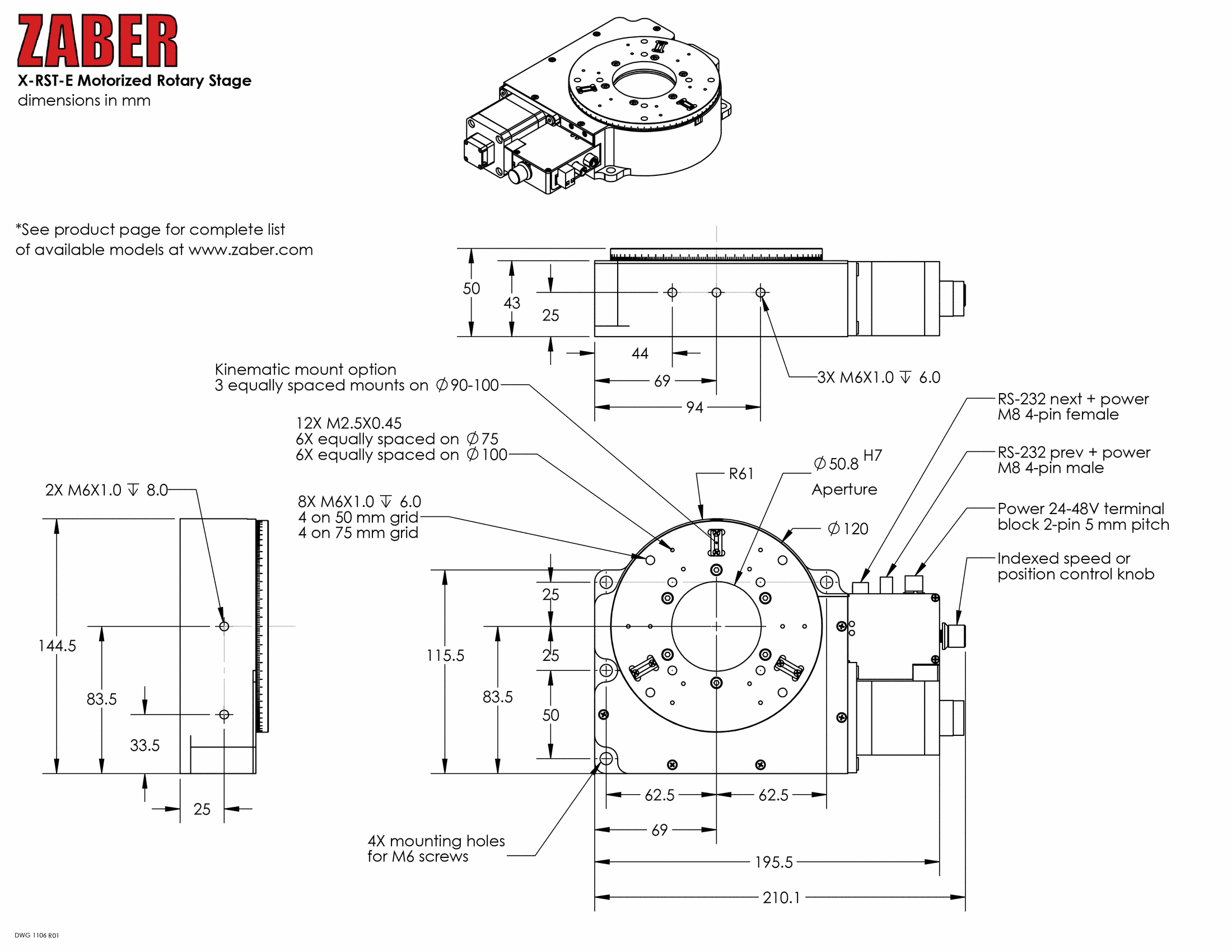 • 内蔵コントローラ。他のZaber製品とデイジーチェーン接続可能