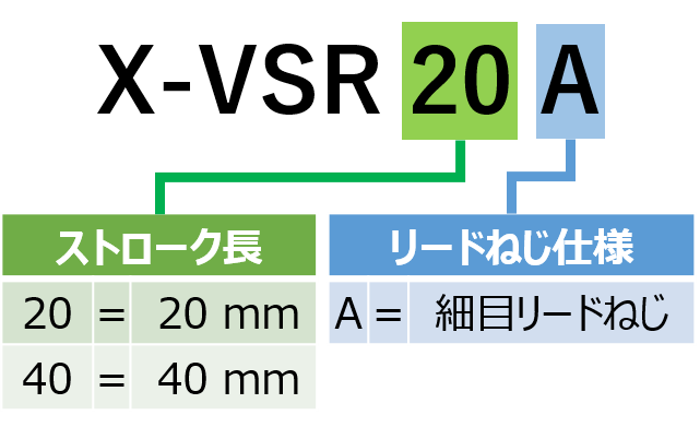 | 型番/スペックシートDL | X-VSR40A-Datasheet.pdf | 概要 | 40 mmトラベル |